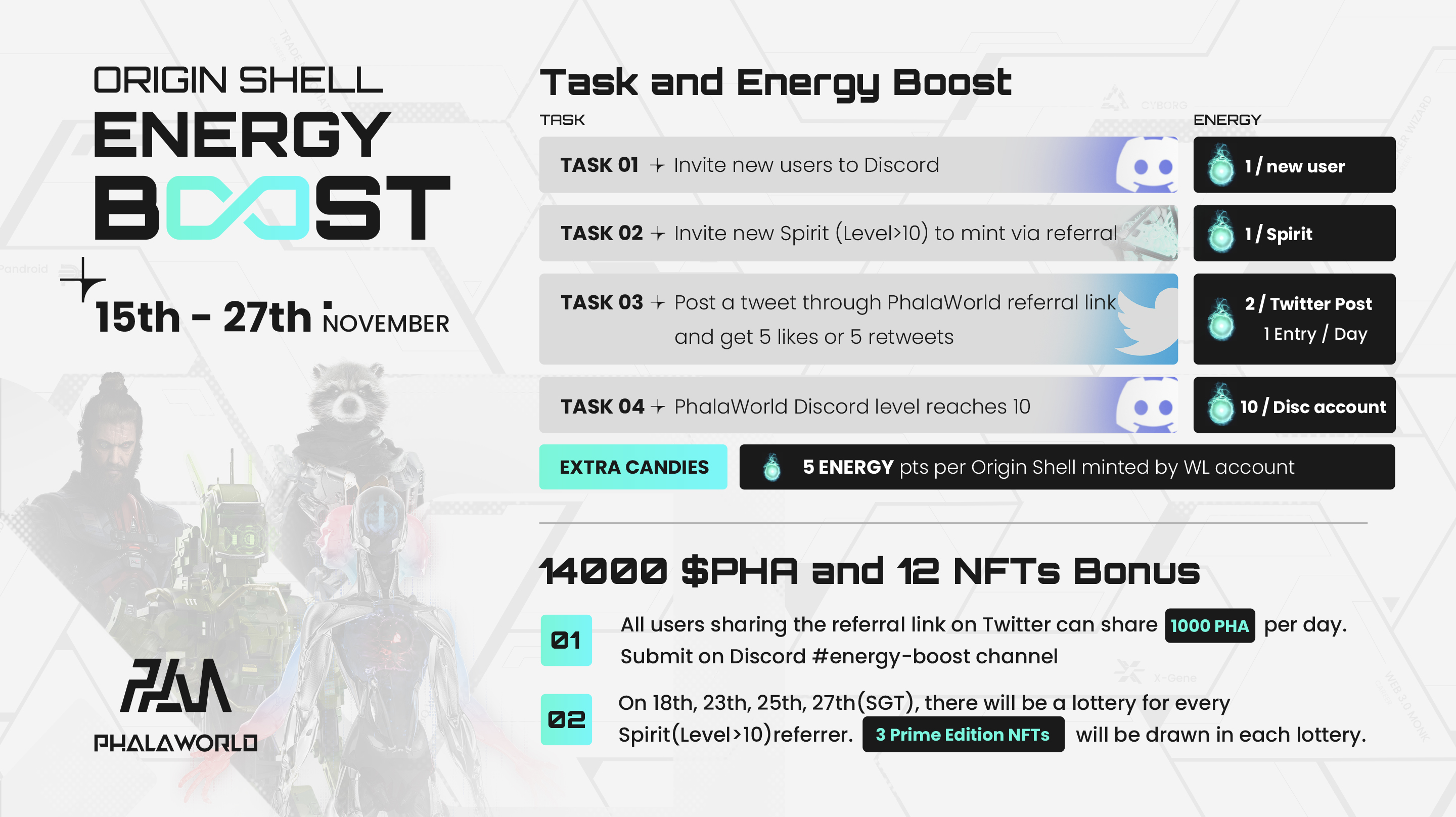 All the energy pts, Prime NFTs and PHA tokens will be distributed by the end of the campaign, before the formal incubation.